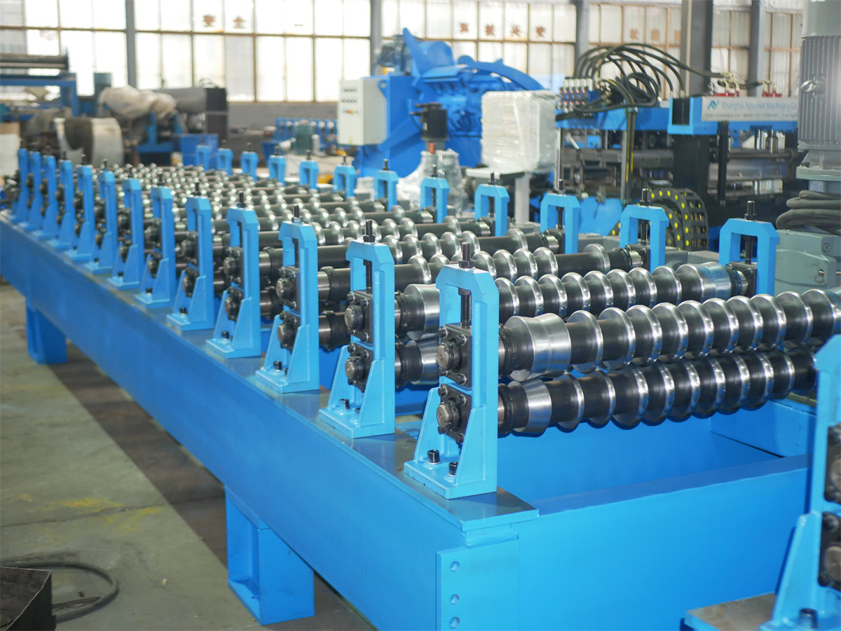 지붕 패널 롤 포밍 머신에는 약 23 개의 스테이션이 장착되어 있으며, 생산 된 지붕 패널이 고품질임을 보장합니다. 스테이션은 롤 포밍 프로세스를 처리하도록 설계되었습니다.긴 금속 스트립을 원하는 모양으로 계속 구부리는 것을 포함한다..
